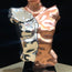 Crafted using the lost wax carving technique, the statue begins with a meticulously detailed wax model. From this model, a resin mold is made, allowing for the precise electroplating process. The torso is bathed in separate solutions of silver and copper, resulting in a flawless finish that highlights the intricate curves and contours of the female form.