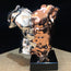Crafted using the lost wax carving technique, the statue begins with a meticulously detailed wax model. From this model, a resin mold is made, allowing for the precise electroplating process. The torso is bathed in separate solutions of silver and copper, resulting in a flawless finish that highlights the intricate musculature and contours of the male form.